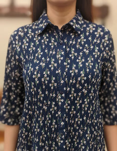 Blusa Plisada Azul Floreada