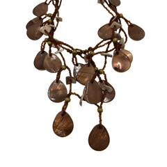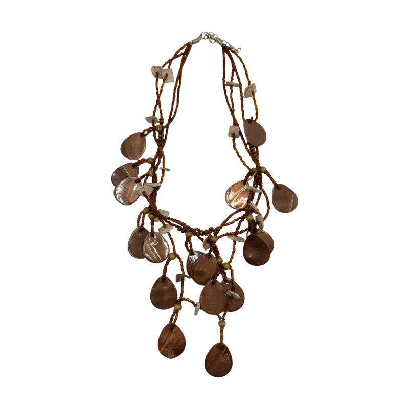 Collar con mostacilla de color café y pequeñas lágrimas de nácar esmaltadas color negro.