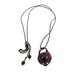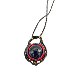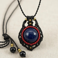 Collar con macramé encerado y un colgante de piedra lluvia de estrellas y detalles en macramé.