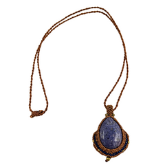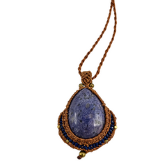 Collar con macramé encerado y un colgante de piedra y detalles en macramé.