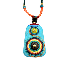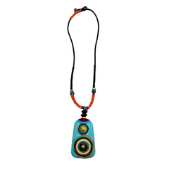 Collar con cordón de ecocuero y detalles en hilo encerado, colgante de piedra turquesa con hilos de colores.