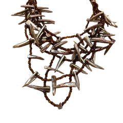 Collar de mostacilla color Café con púas hechas de Nácar.