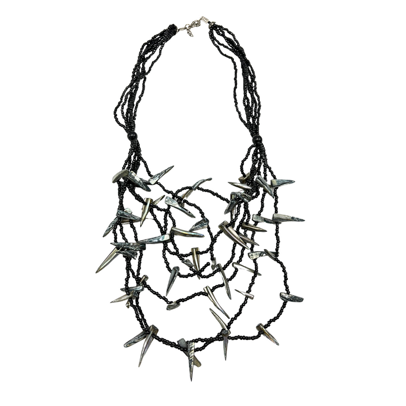 Collar de mostacilla color negra con púas hechas de Nácar.
