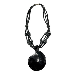 Collar con cuentas de madera negras y colgante de Nacar pintado negro.