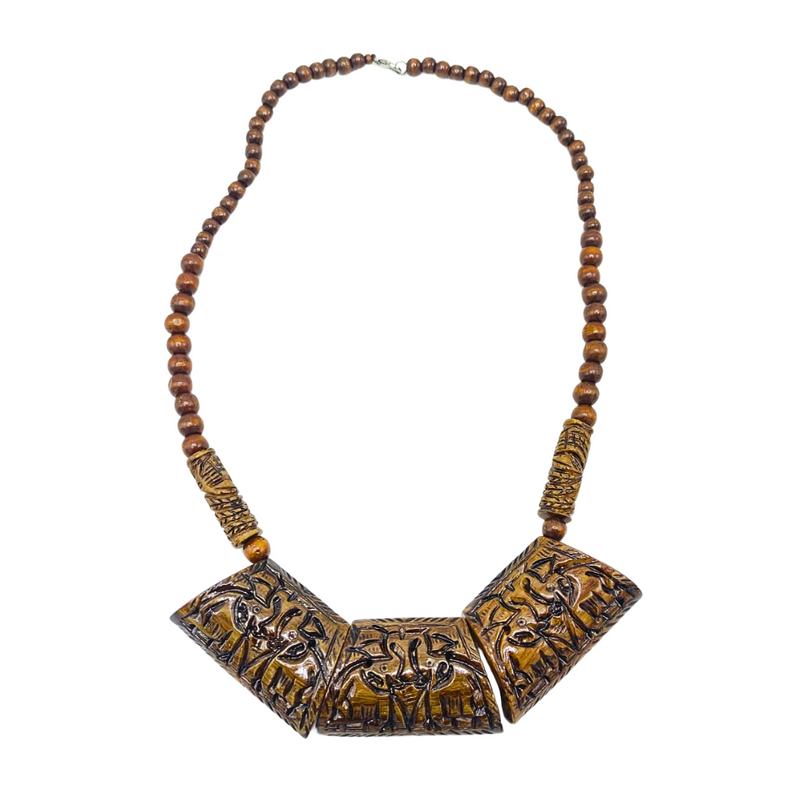 Collar de Madera estilo tribal con colgantes de hueso tallado.