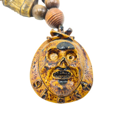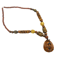 Collar de Madera estilo tribal con colgante de hueso tallado.