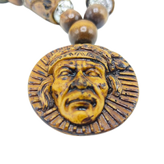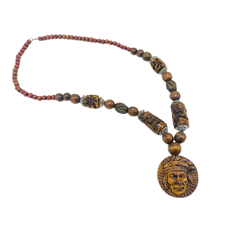 Collar estilo tribal de Madera y colgante de hueso tallado.