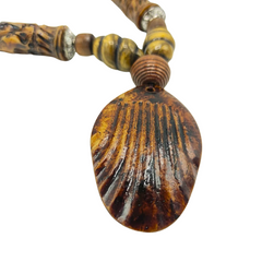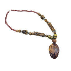 Collar de Madera estilo tribal con colgante de hueso tallado.
