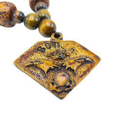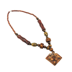 Collar de Madera estilo tribal con colgante de hueso tallado.